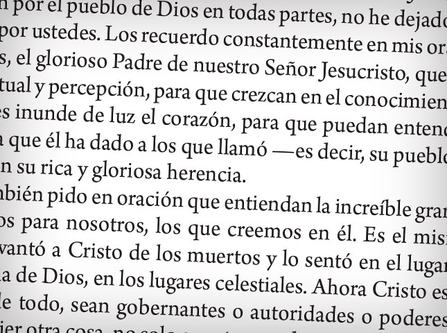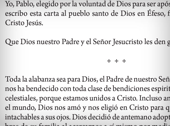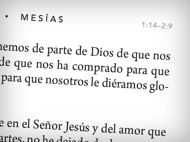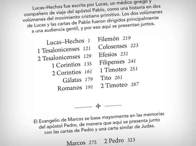 En la parte superior de cada página, se podrá encontrar la extensión de capítulos y versículos que abarca el texto de esa misma página.