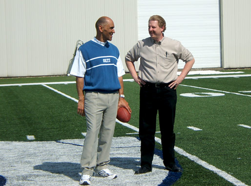 Coach Dungy and Alan discussing the next take