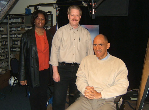 Yolanda Sidney (Marketing Manager - Tyndale House Publishers), Alan Huizenga, on the set with Coach Dungy