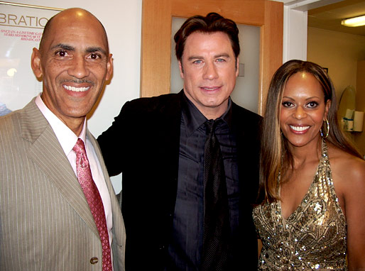 John Travolta greeting Tony and Lauren Dungy at the Tonight Show