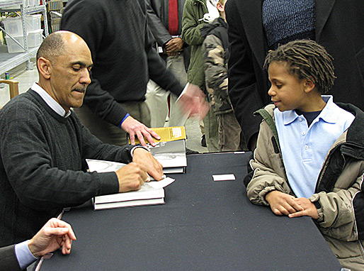 This young fan patiently waits for his book to be signed!