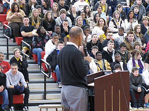 Tony Dungy giving a talk during assembly at North Side High School at Fort Wayne, IN