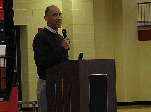 Tony Dungy giving a talk during assembly at North Side High School at Fort Wayne, IN