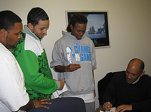 Tony gives his autograph to students at North Side High School at Fort Wayne, IN