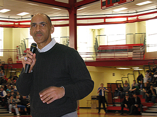 Tony receives questions from the students at North Side High School at Fort Wayne, IN