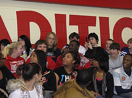 Tony receives questions from the students at North Side High School at Fort Wayne, IN