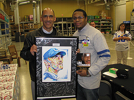 Tony with Theoplis Smith III, the artist of this drawing of Mr. Dungy.