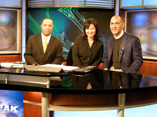 Tony on set with WISH-TV's Daybreak anchors - © All rights reserved. Photo by Jessica Atteberry Quinn