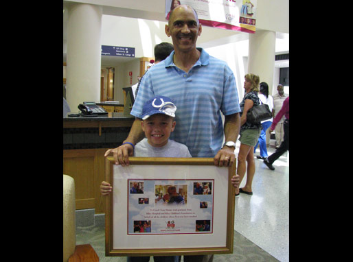 Tony Dungy with his award from Basket of Hope and Riley Hospital for Children!