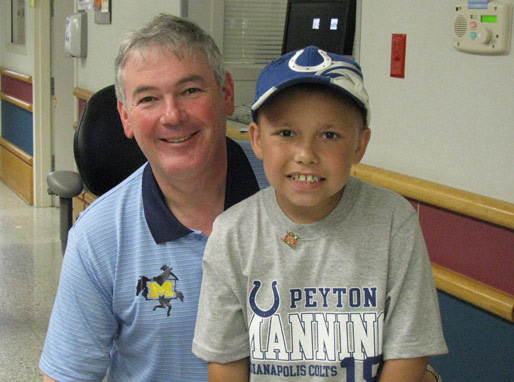 Winner talking with patients