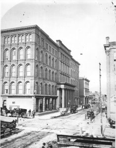 In my new book, Count the Nights by Stars, one of the main characters isn’t a person. The Maxwell House Hotel plays such a significant role in both story lines of this split-time novel that it feels very much like a beloved character. Because the hotel no longer exists (you’ll find out what happened to it when you read the book) and we can’t visit it in person, I thought I’d give you a virtual tour of the famous hotel, built in 1859, which stood at the corner of Fourth Avenue and Church Street in downtown Nashville.