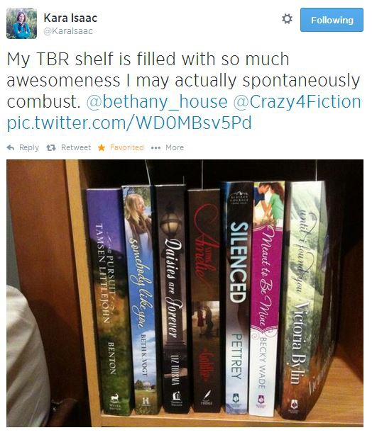We love seeing your #shelfies too, readers! Here are some great ones sent to us on Twitter @Crazy4Fiction: