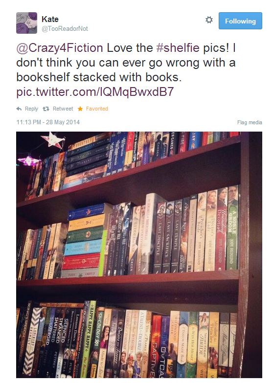 Don’t forget to take a quick snapshot of YOUR #shelfie, share it with us @Crazy4Fiction on Twitter for a chance to be featured on the blog!