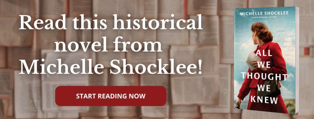 Join author Michelle Shocklee as she takes us on her journey of discovering where her latest time-slip novel, All We Thought We Knew, would be set and who her main characters would be.