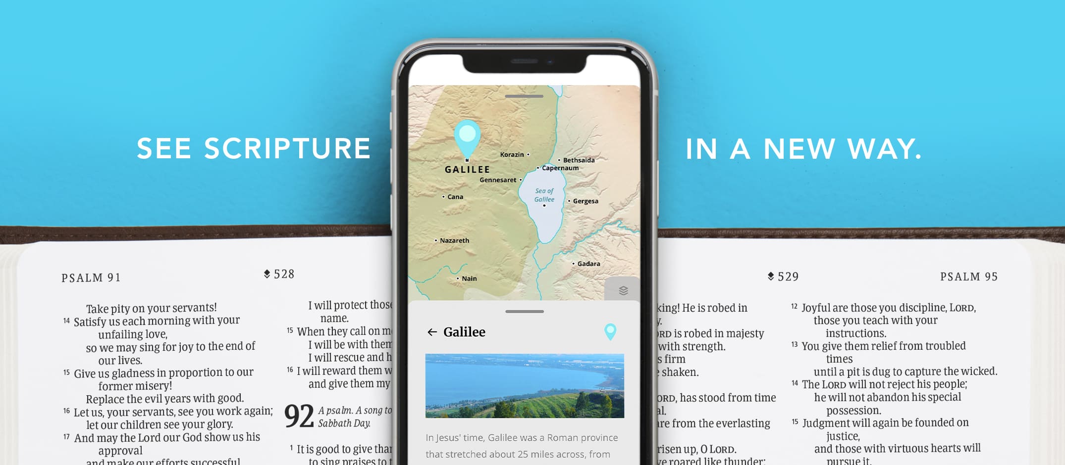 The Filament Bible Experience is a unique, engaging encounter with God’s Word. It pairs a beautiful print Bible with the Filament Bible app, giving you access to a depth of resources you simply cannot fit in a bound Bible. This is available through an historic, patented innovation no other app or Bible software can offer: by simply scanning the page number, you will access study notes, profiles, devotionals, videos, interactive maps, music, and more that relate to the page you are reading.