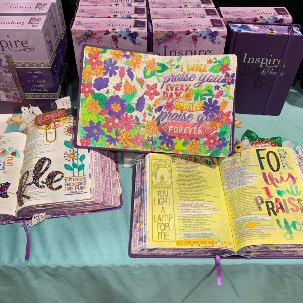 We have just a few more stops on the Stamp and Scrapbook Expo schedule. Would you pray for those who walk by our booth or take the workshop? We’ve sold women their very first Bibles (ever), prayed with women who are battling heavy life situations who picked up an Inspire: Psalms, and engaged with moms and daughters about journaling in the Inspire Bible for Girls during their quality time together. We’ve seen people experience the Holy Spirit’s “aha” moments about getting creative for Christ and encouraged others who saw the Bible as intimidating to begin their journey to learn about God. People have even prayed for and encouraged us in the booth! Isn’t it amazing that God would put creativity in our hearts so that we can worship him? Let us live INSPIRED as we read and respond in the margins of our Bibles.