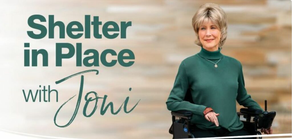 • Spend a little extra time in your devotions. Whenever sports teams are disrupted and have setbacks, the head coach usually returns to the basics…the fundamentals that built the team in the first place. This is not a time to go “AWOL” on spiritual disciplines—press into the things of God. What is he teaching you? How is this season stretching your faith? If you are looking for a good daily devotion, check out Shelter in Place with Joni on the YouVersion Bible App https://www.bible.com/ or log onto Joni and Friends to access our online bible study www.joniandfriends.org/bible-reading-plans.