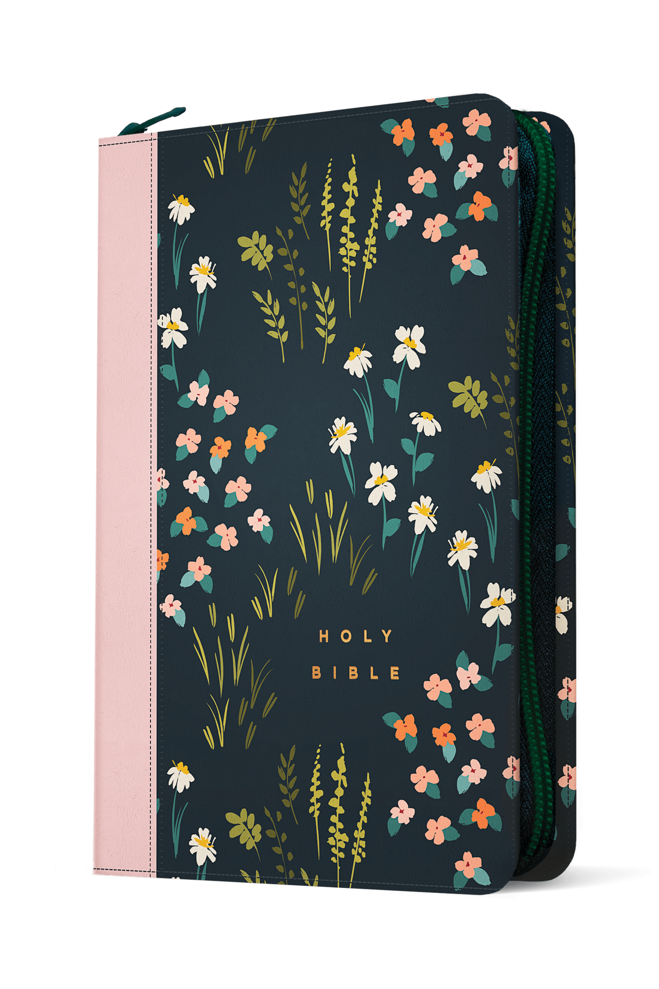 This summer we will be releasing some new covers in one of our most popular Filament Bible lines, the Filament Large Print Thinline Reference Bibles. There will be two zipper covers one that is navy with flowers and the other looks like a letter in brown and tan. This fall we will be releasing a gorgeous green cover with a mountain on the front.