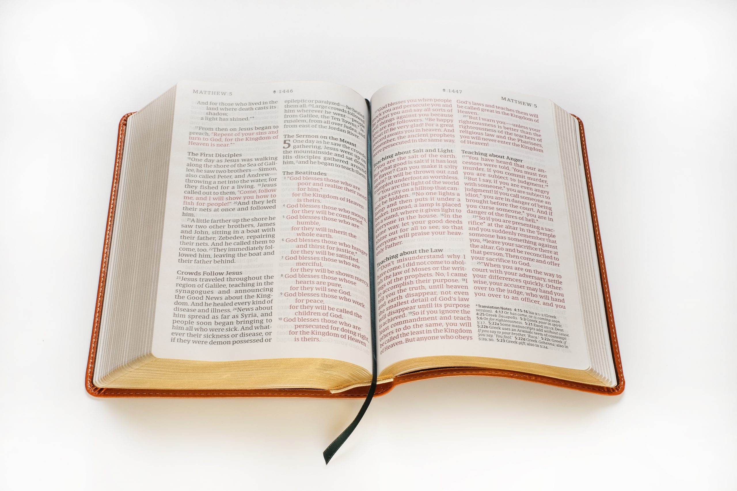 Jeff: I’ve fallen in love with the NLT Large Print Thinline Reference Bible, Evergreen Mountain LeatherLike. As part of the teaching team in our church’s high school ministry, I’ve found this Bible is the perfect combination of highly readable and easy to hold while speaking. In particular, I love the way the chapter numbers are called out, making it very easy to keep my place while teaching. The Smyth-sewn binding and trim size mean that this is a Bible that stays open anywhere—on a pulpit, on a music stand, or even on your lap! And Filament gives me easy access to resources that I can share to the TV from my phone, especially Bible Project videos. Finally, I love the poignant reminder on this cover: to look not to the mountains but to the Lord for help.