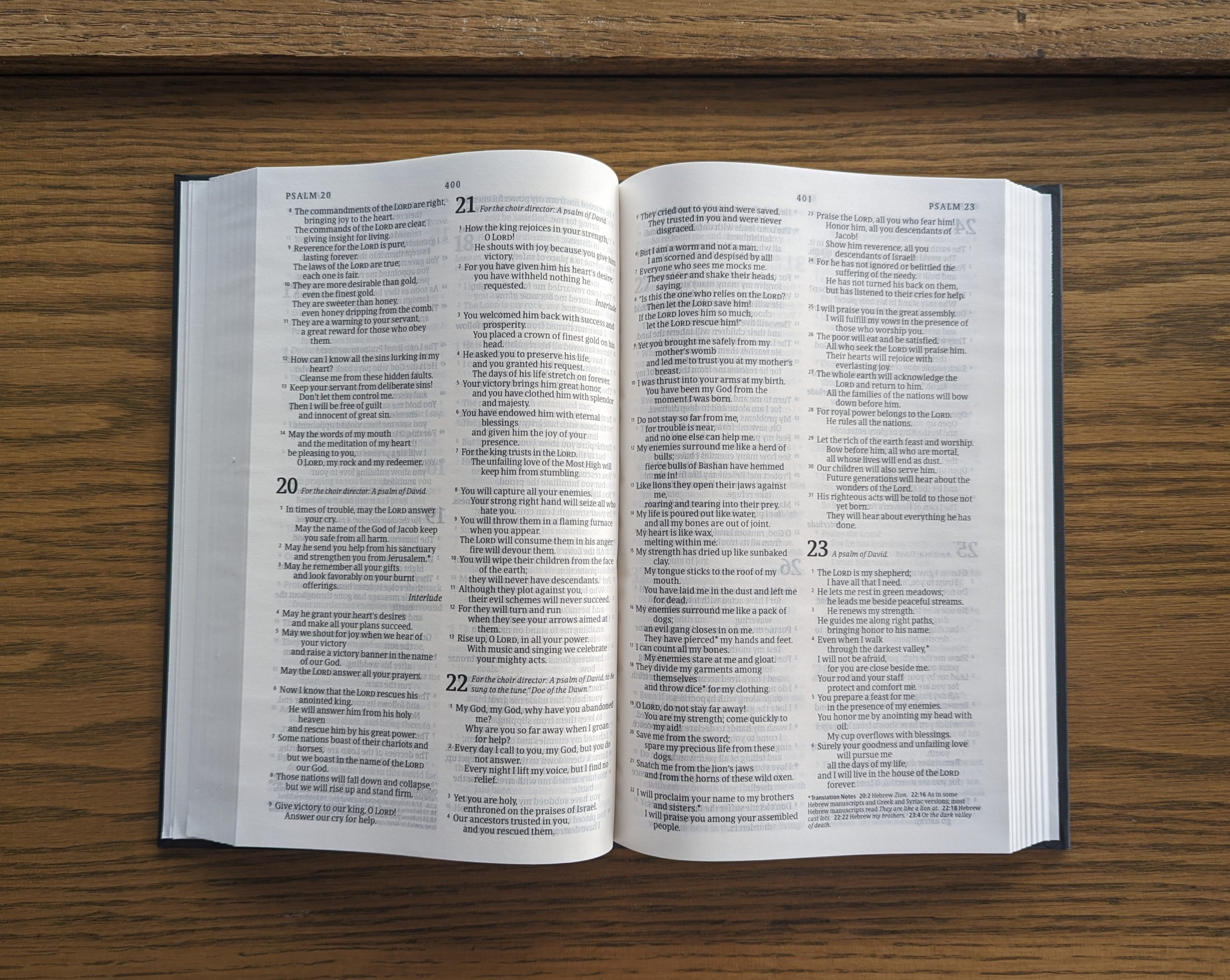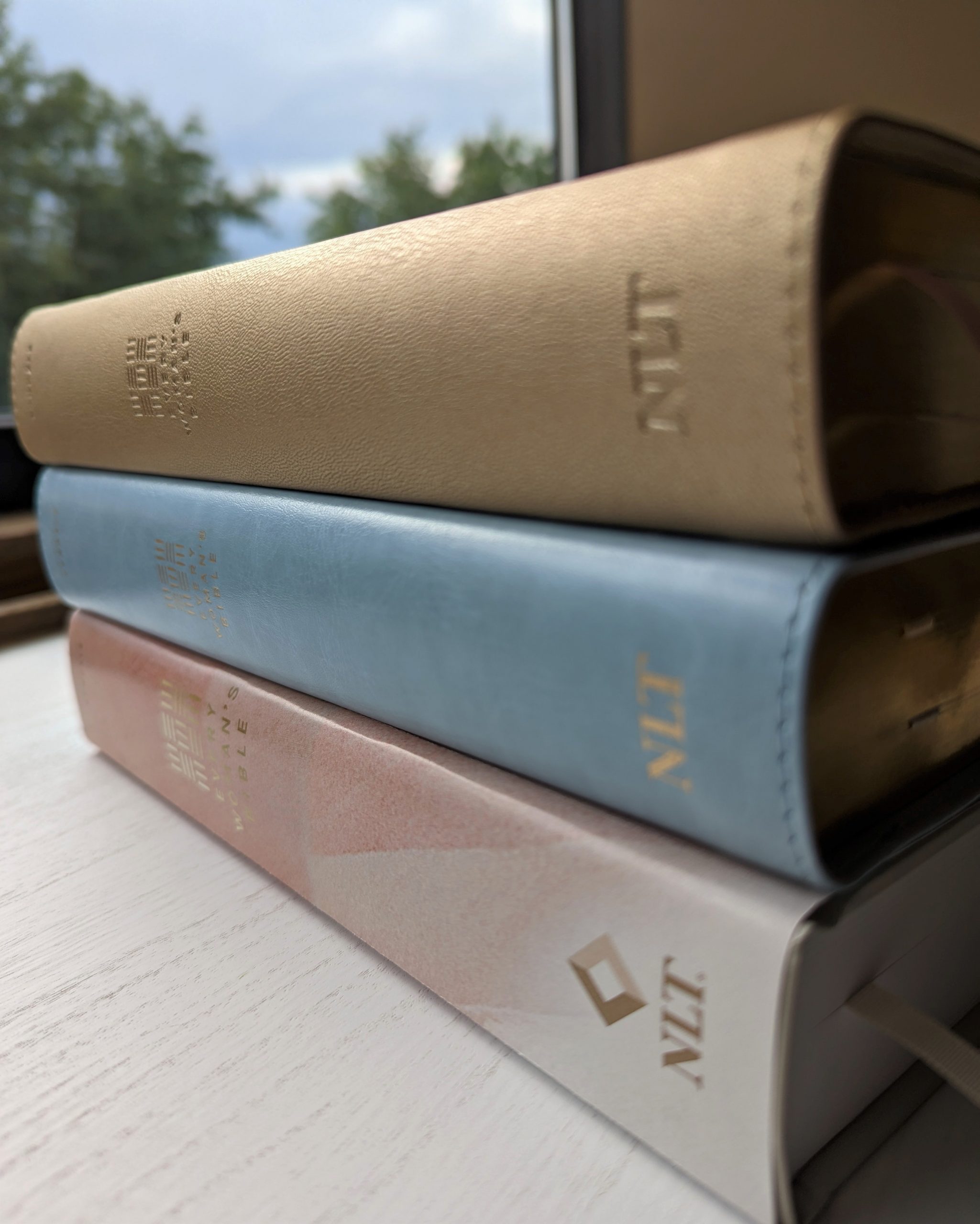 Kim: I would love to receive an NLT Church Bible this Christmas! I love the beauty and simplicity of the black cloth-like hardcover design with the words Holy Bible in gold foil on the front. It’s a really great size and weight, which will make it a great Bible for taking to church and Bible-reading on the go. It’s also available in a 24-pack for churches!