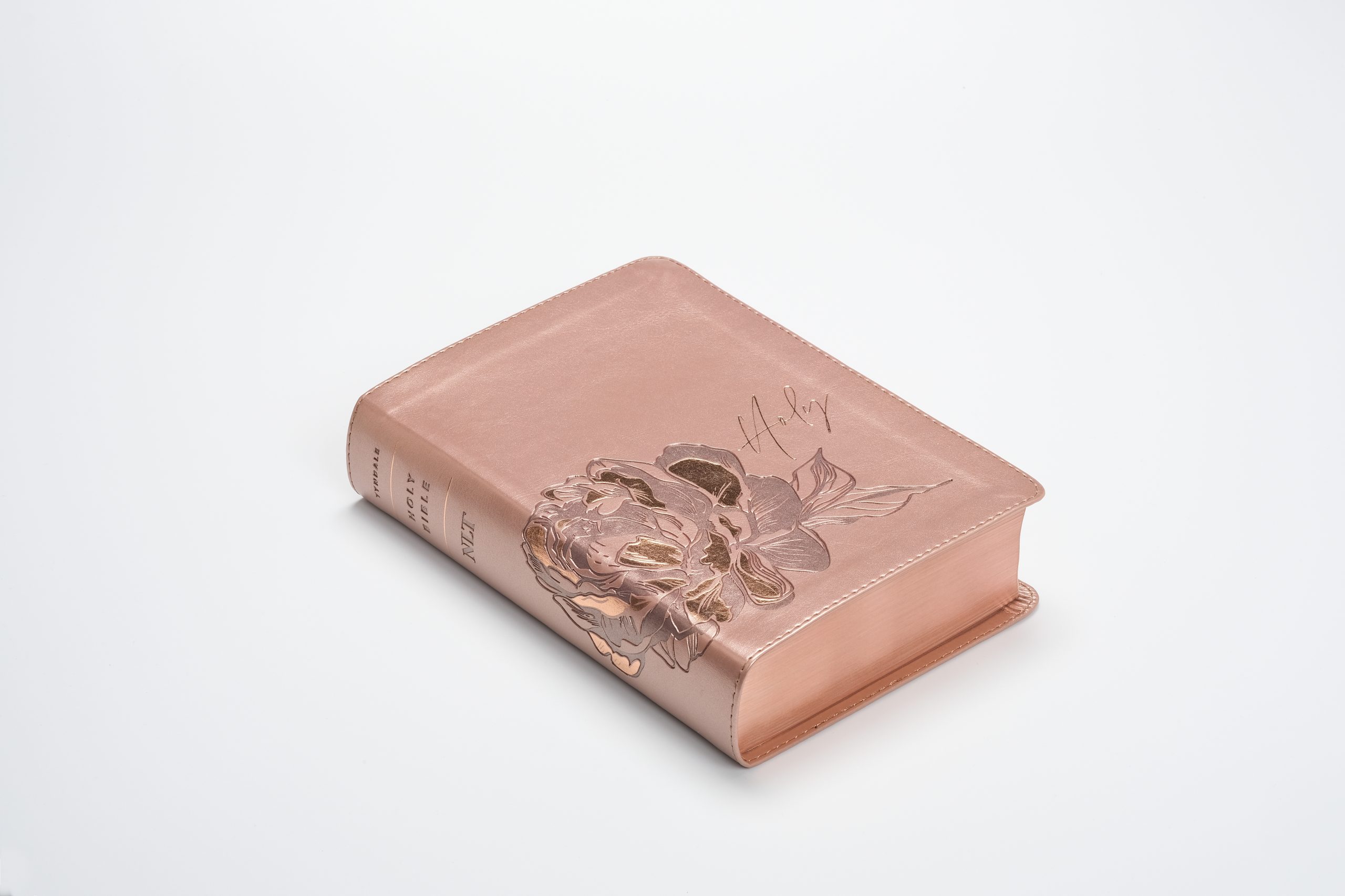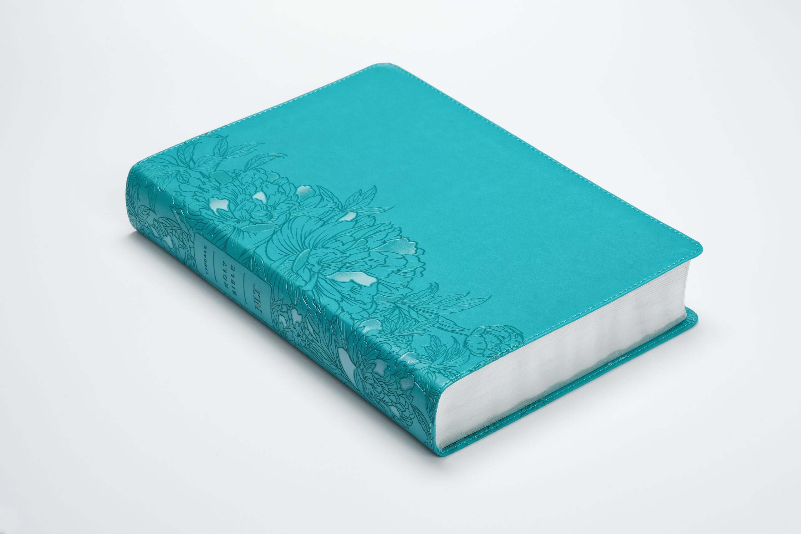 Filament Compact Giant Print Bibles bring you the best of portability and readability with a larger font in a smaller sized Bible. Like other compact editions of the New Living Translation, this Bible fits easily into a purse, backpack, briefcase, or suitcase. This Bible features the life-changing New Living Translation text in 10-point font with the words of Jesus in red. There are four different covers: rose gold, navy blue, brown cross, and peony teal.