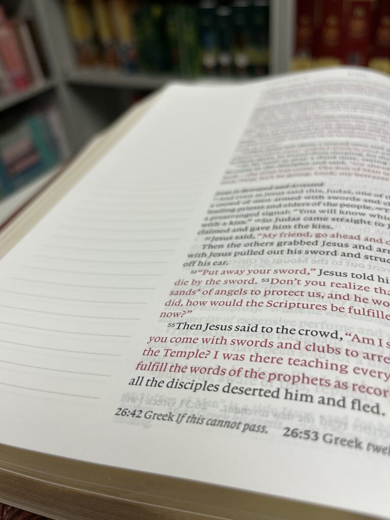 This Bible is amazing! Filament Super Giant Print Bibles have the largest font size in the line yet are still easy to carry with you. It’s an easy-to-read 16-point font Bible that isn’t as big as a door stop! This Bible truly is a marvel. It features the words of Jesus in red and is perfect for someone who needs that little extra help reading the text but still wants a portable Bible. It is available in brown, black, and peony teal.