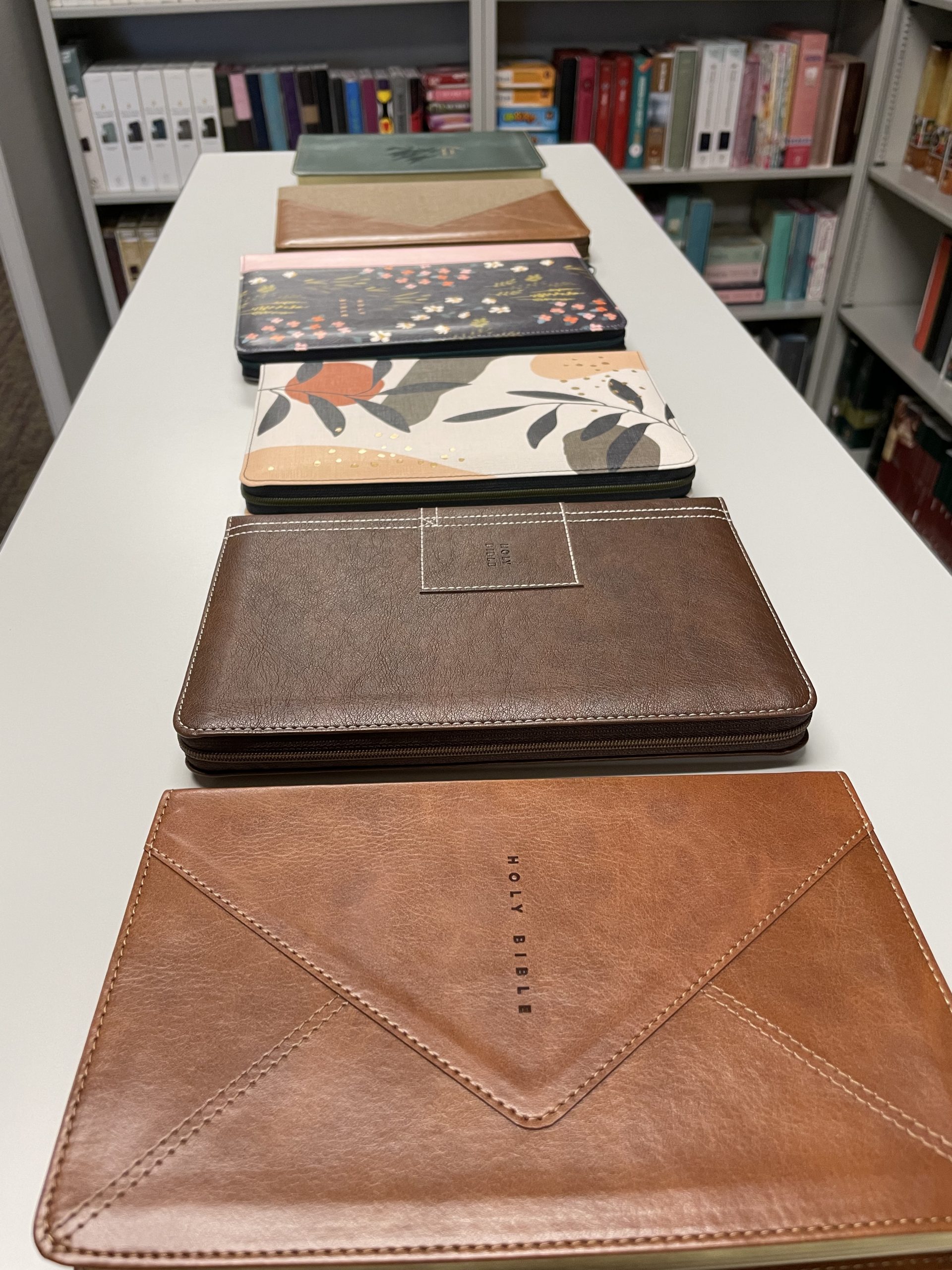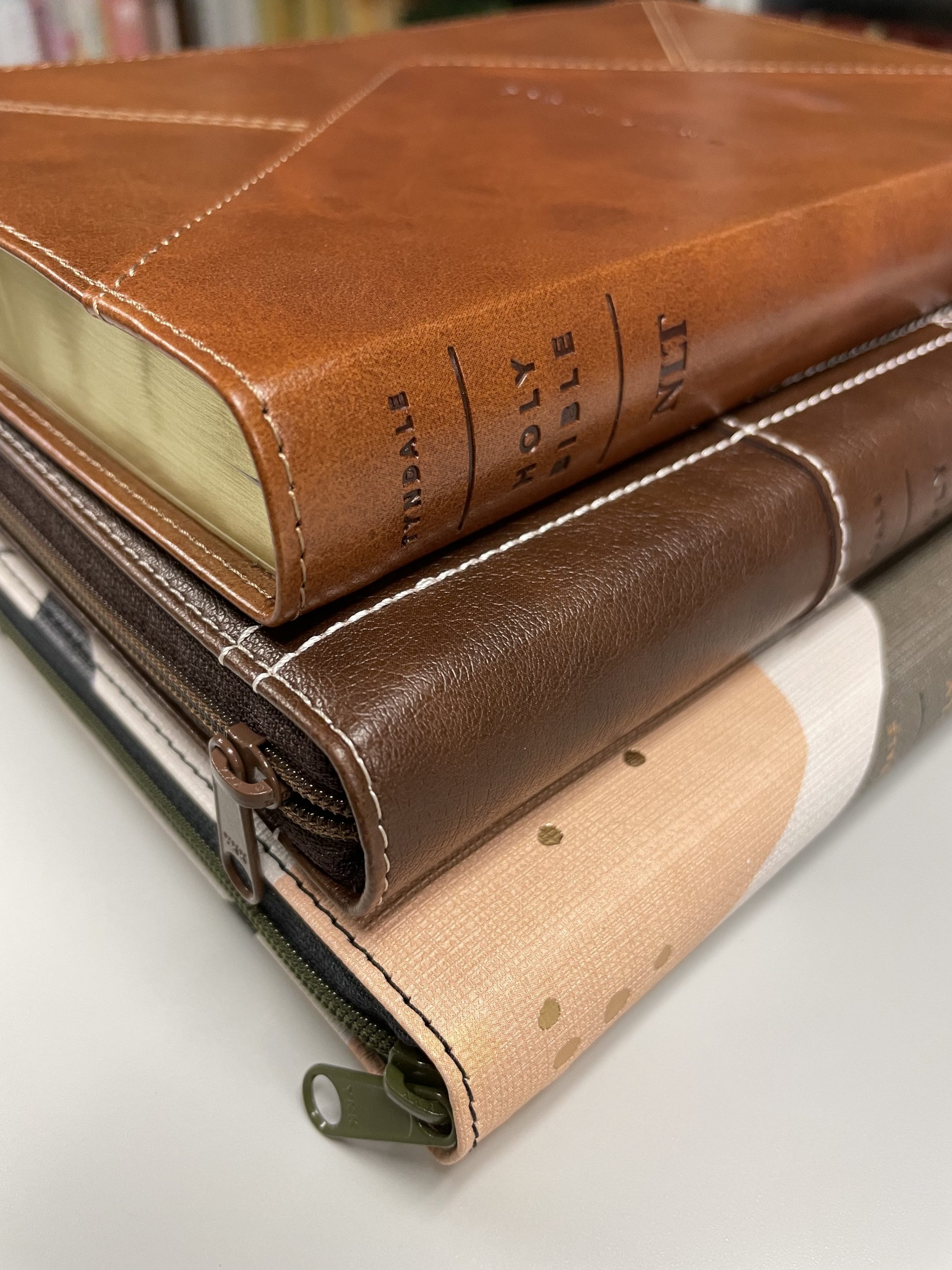 This summer we are releasing three new covers in the Filament Large Print Thinline Reference line. One is a gorgeous green mountain LeatherLike. There will also be two new zipper covers—messenger brown and camel, and navy and pink floral.