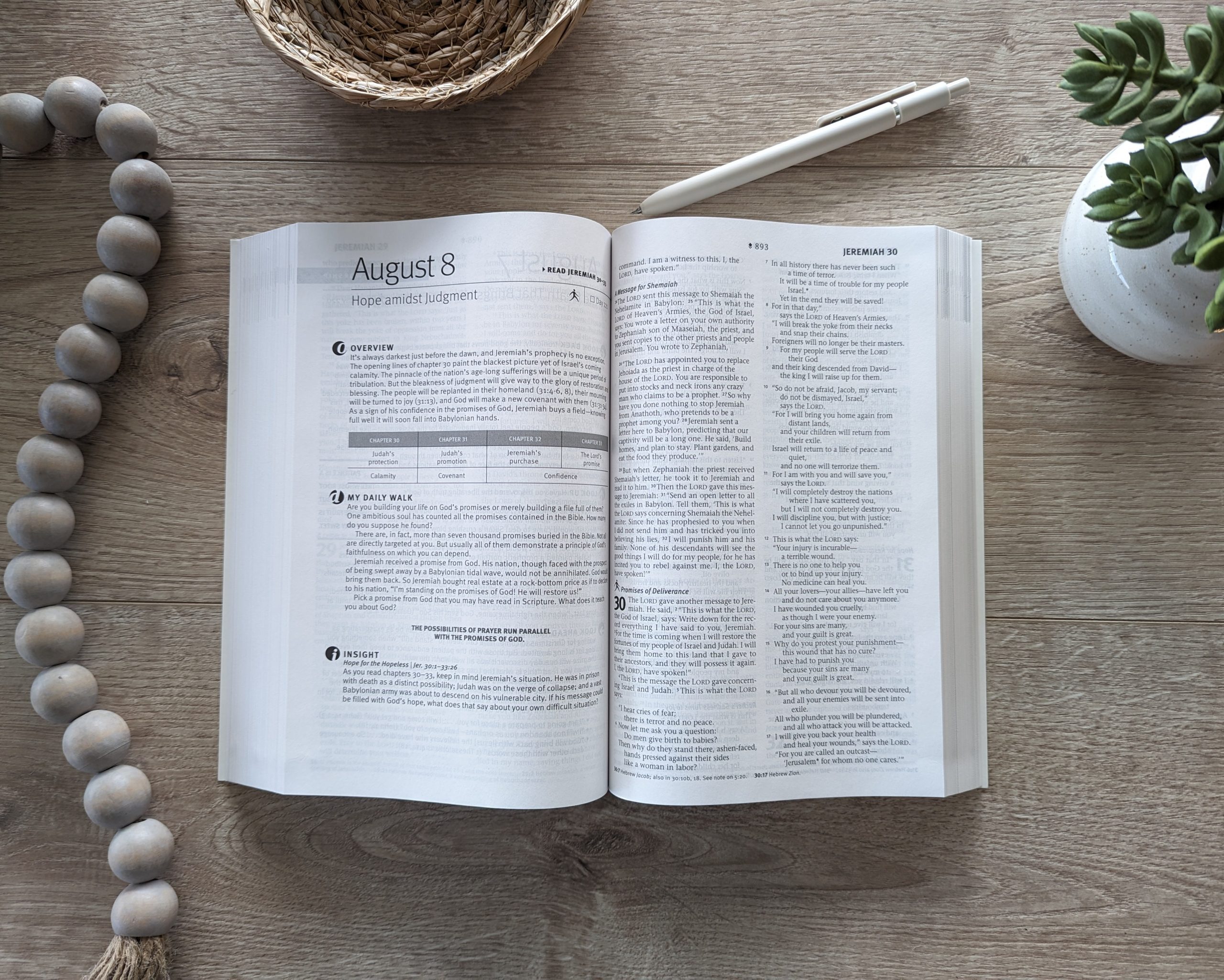 Daily Walk is not the only daily reading Bible to get new LeatherLikes this fall. Our One Year Chronological Study Bible will also be adding two new LeatherLike options. This Bible lets you experience God’s story as it unfolds in chronological order, guiding you through events with daily Scripture readings that are enhanced with study guides and reflection questions. Connect the dots of the Bible’s narrative and gain a deeper understanding that empowers you to apply its teachings to your life. This unique approach helps you construct a holistic view of the Bible, revealing how its diverse parts harmoniously work together. It is perfect for individual and group study. Learn more or order here.