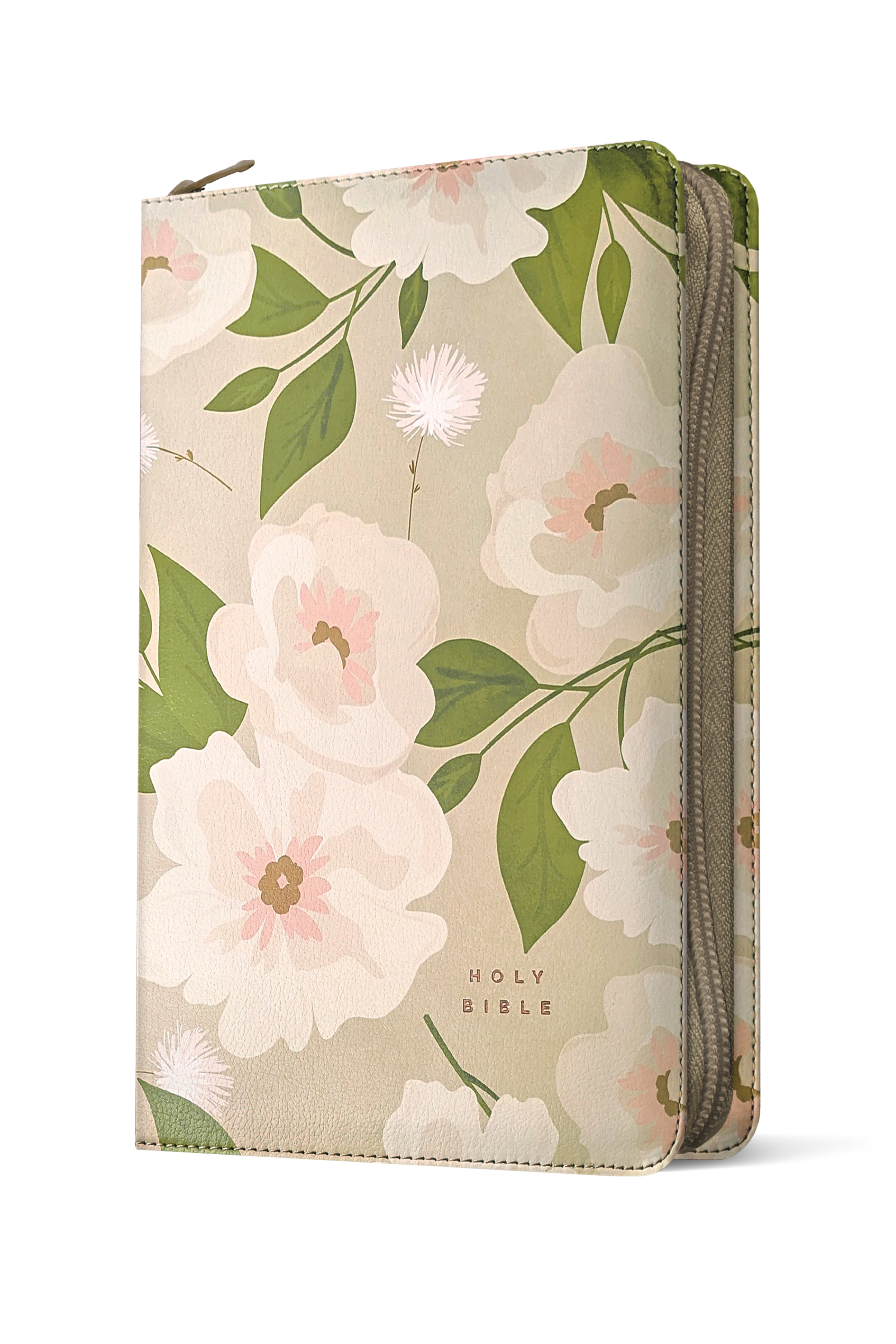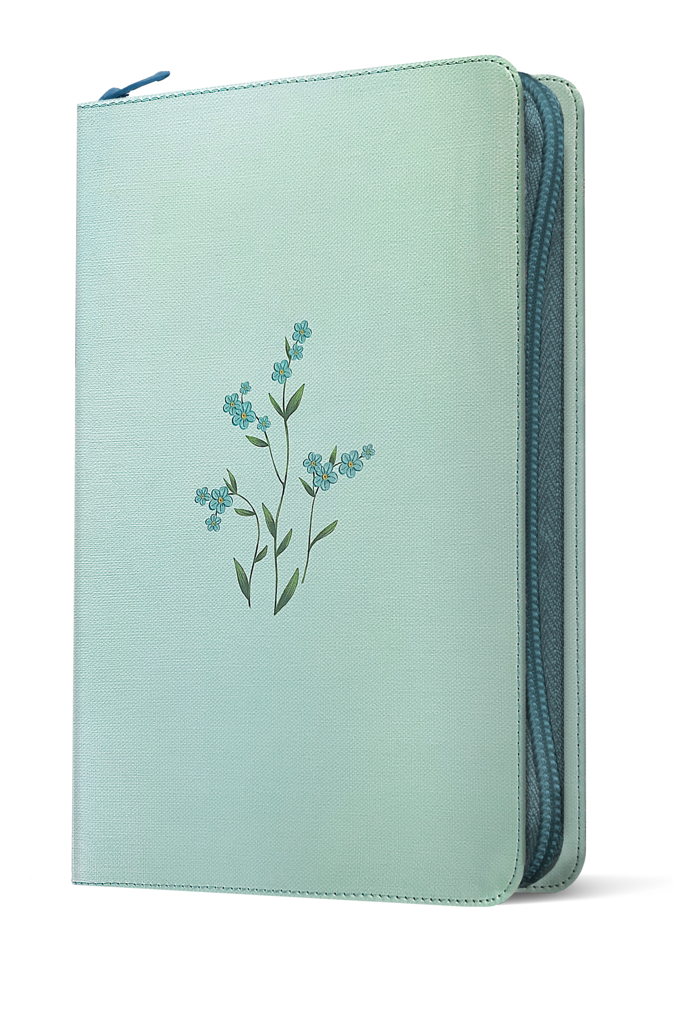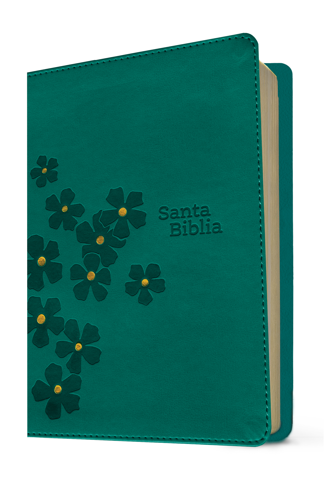 In the Biblia ultrafina NTV, letra grande con Filament Bible line are four new covers. The pink flowers and tranquil blue LeatherLike covers will be available in late September as well as two zipper covers in brown and gray.