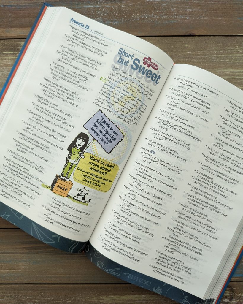 The Hands-On Bible takes you beyond just reading to truly experiencing the Bible. It’s a kids Bible, but it’s not a storybook Bible. The Hands-On Bible includes the entire text of the accurate, understandable, and audibly enjoyable New Living Translation. Packed with weird facts, captivating experiments, colorful graphics, and more, kids won’t be able to stop talking about God’s truth. The full-color features like Bible bonanza experiences, key verse activities, Bible hero bios, fun facts, engaging book introductions, and more open doors to conversations and encourage engagement so you and your kids can experience the Bible together! You will read, taste, feel, and smell Bible truths so you can go deeper in God’s Word.