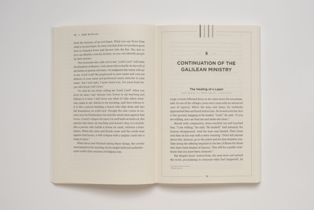 God with Us is a unique and powerful telling of the Gospel—the biography and teachings of Jesus and the story of redemption—as the accounts of Matthew, Mark, Luke, and John are woven together into a single narrative. God with Us crystallizes the story of Jesus, amplifies his life-changing message, and clarifies the gift of salvation. It is a reading experience unlike any other.