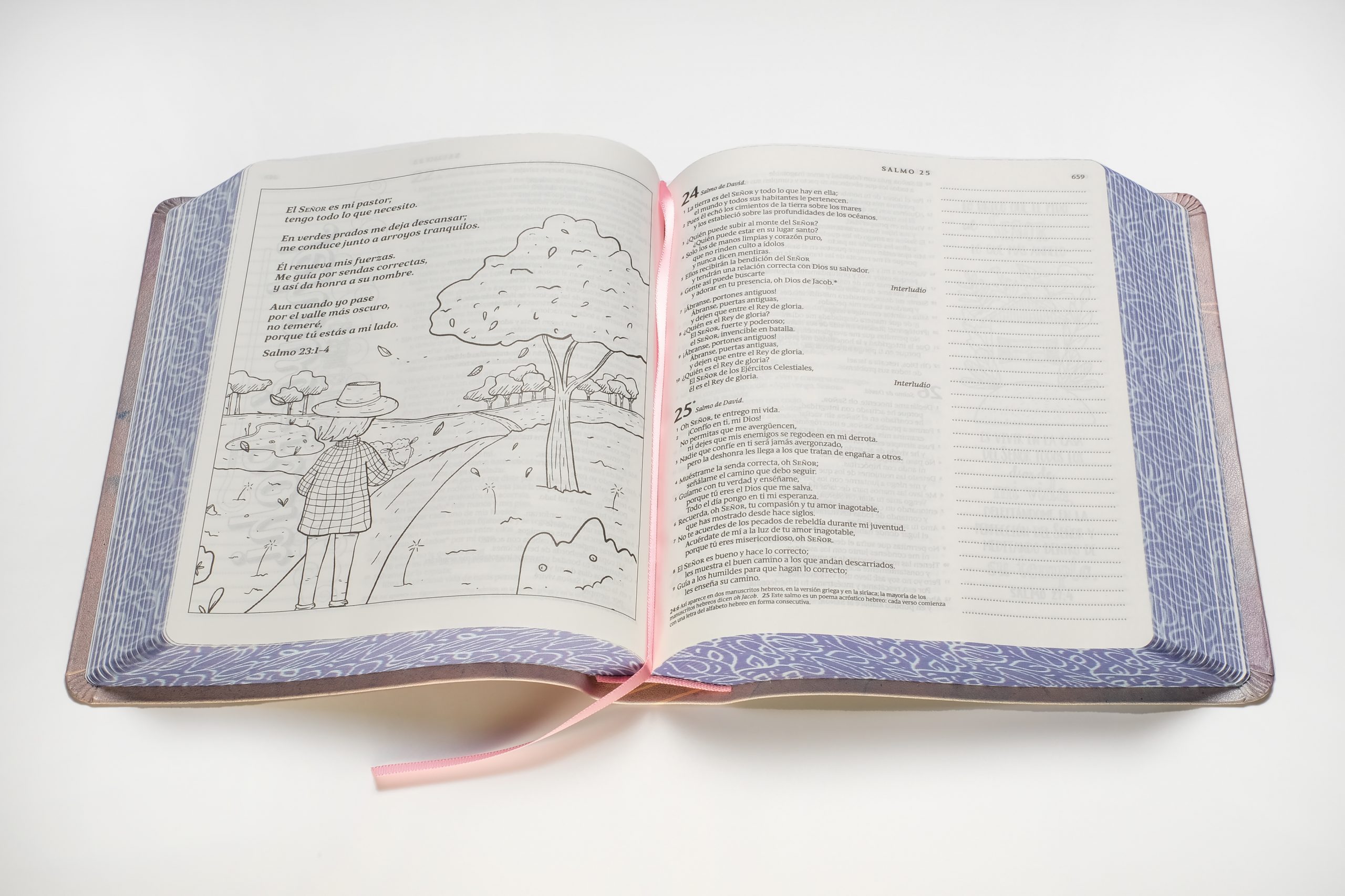 At the heart of Biblia Inspira NTV lies a profound mission: to ignite the flames of creativity and deepen the spiritual journey of every believer. Crafted with meticulous attention to detail, this masterpiece combines the timeless wisdom of Scripture with the vibrant allure of artistic expression. Boasting over 400 exquisite line-art illustrations curated by Latin American artists, this single-column, wide-margin Bible invites readers to embark on a transformative voyage of discovery and introspection.