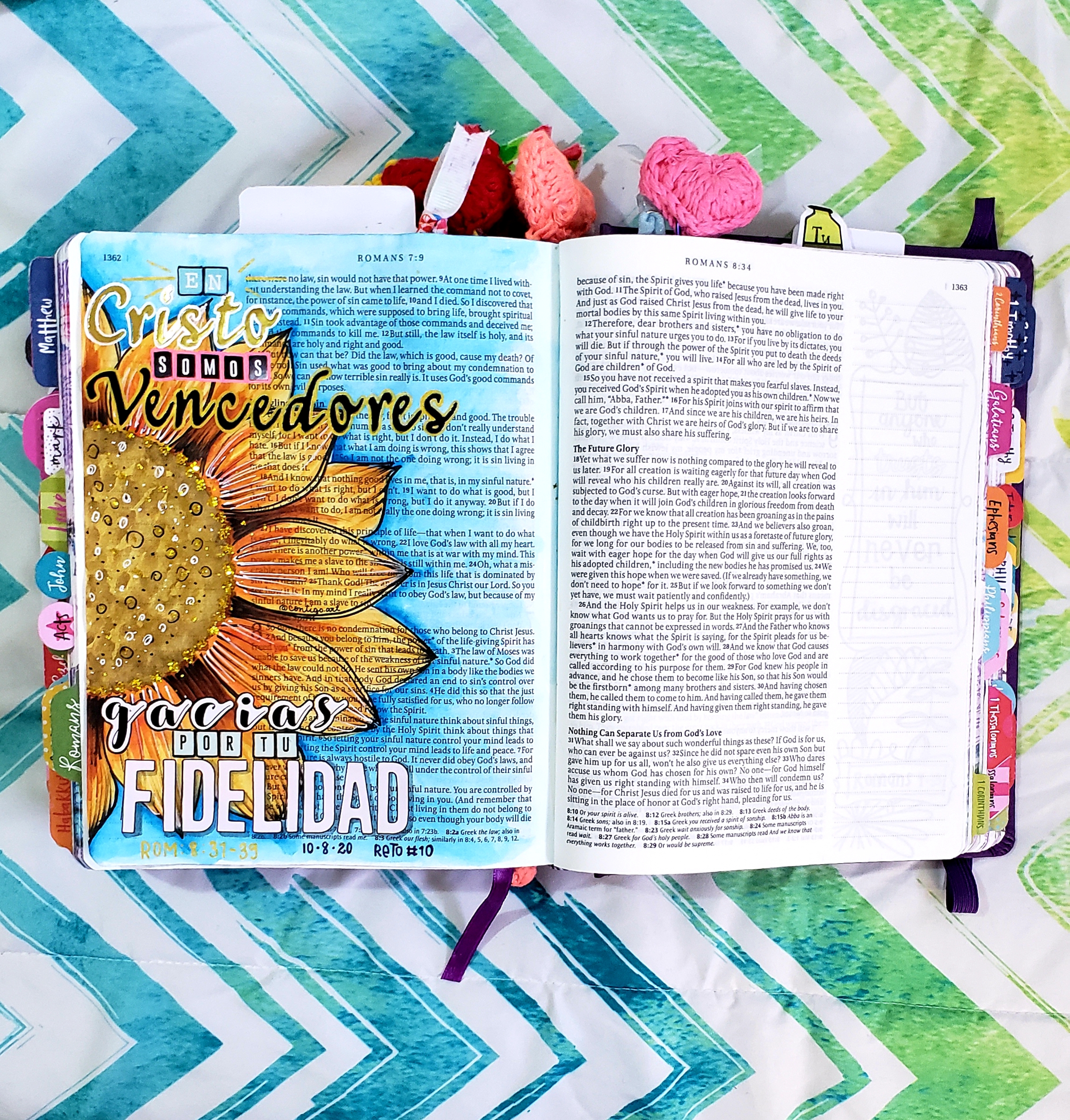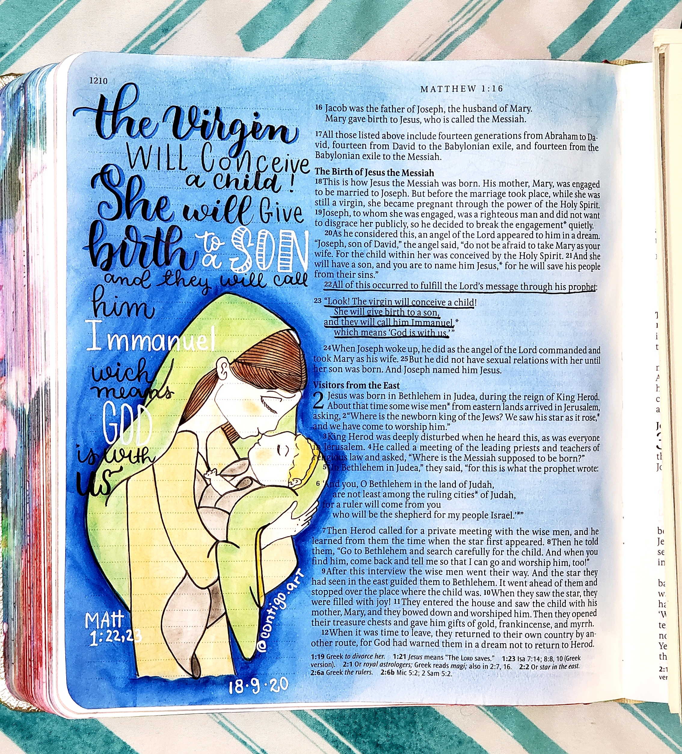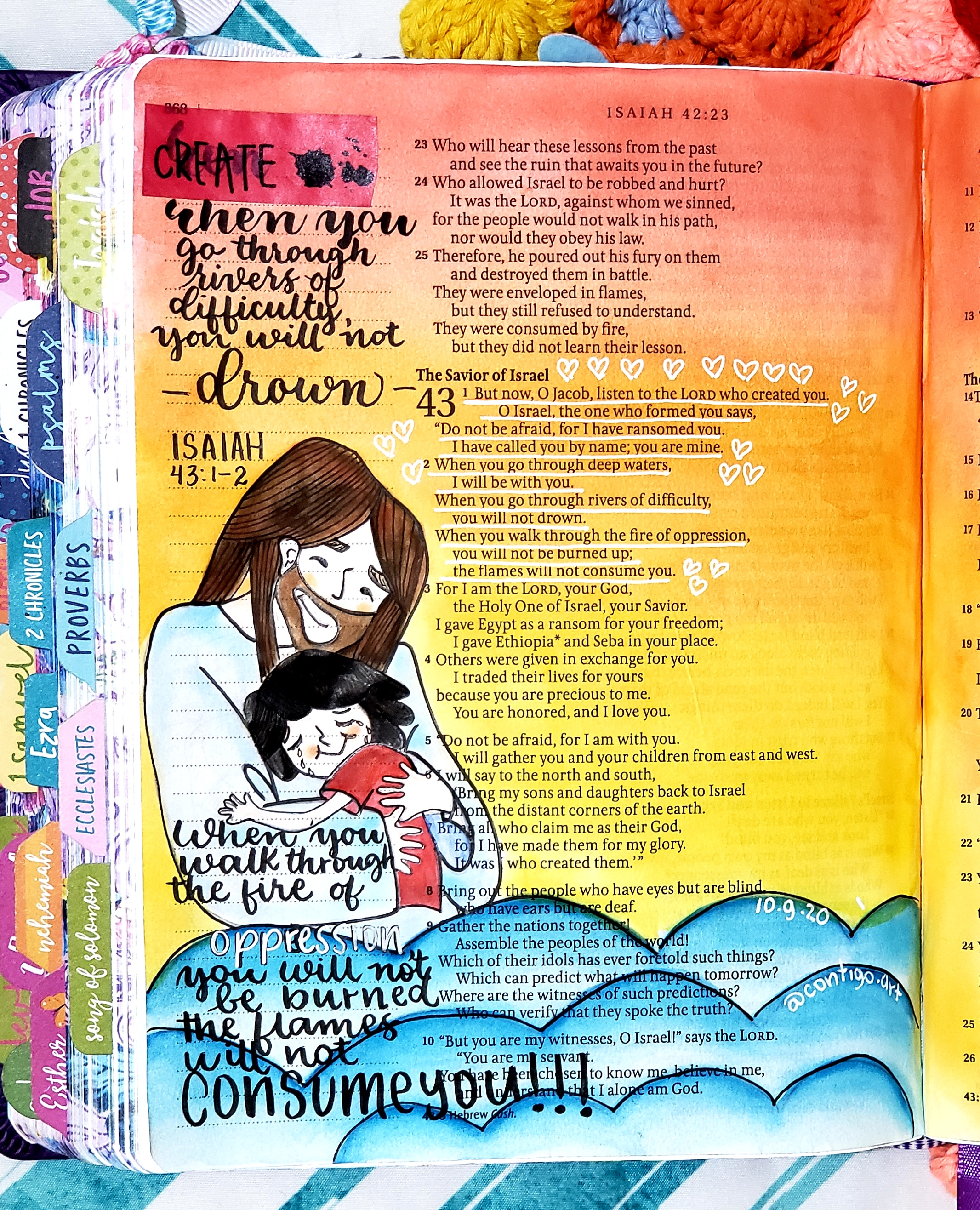 When days go by without painting my Bible, I feel empty and lost. I not only enjoy painting but also teaching others, that they can also discover the treasure that God gave me of illustrating the Bible. I’ve learned to seek God through his Word, and this has helped me in many areas of my life. It has strengthened my relationship with family, friends, and even myself, and it has enabled me to have more empathy and compassion toward others. It has changed my perspective on life and has given me a new reason to share the love of God, filling others’ worlds with color and hope.