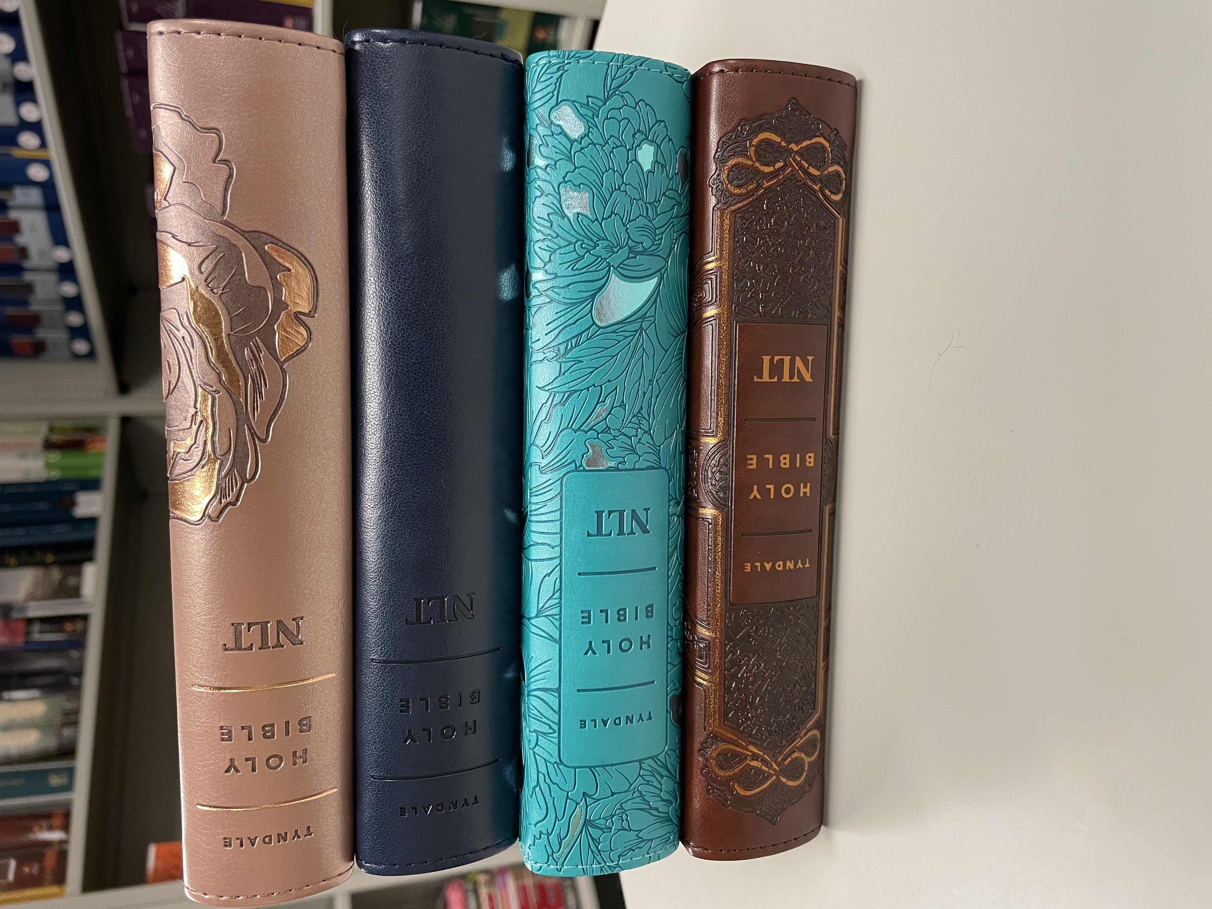 For giant print fans, we have two exciting new lines releasing. The Super Giant Print Filament Bible has an easy-to-read 16-point font (you read that right—16-point font!) while still being light and easy to carry. This edition features the words of Jesus in red, the full-color Visual Overview of the Bible, and translation notes with minimal interruptions for a comfortable reading experience. It will be available this spring in peony teal, brown, and black covers. Indexed editions will be available, and did we mention how amazing it is that it has a 16-point font size?!