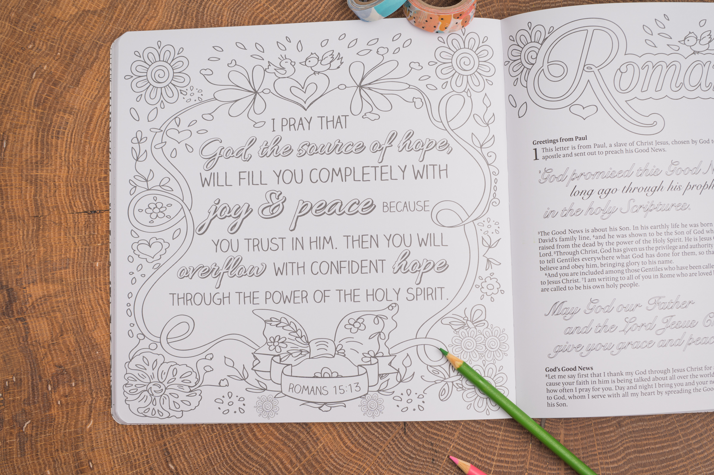Inspire: Acts & Romans includes all the cherished features from the bestselling Inspire Bible displayed beautifully in a coloring-book-style, square-trimmed edition that features high-quality art paper. Inspire: Acts & Romans features full- and partial-page Scripture line-art illustrations, plus words to color right within the Bible text to inspire Scripture meditation and response.